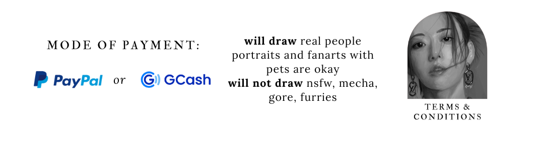 - A full payment or 50% down-payment is required before I start sketching and pay the remaining half when the piece is finished already.
